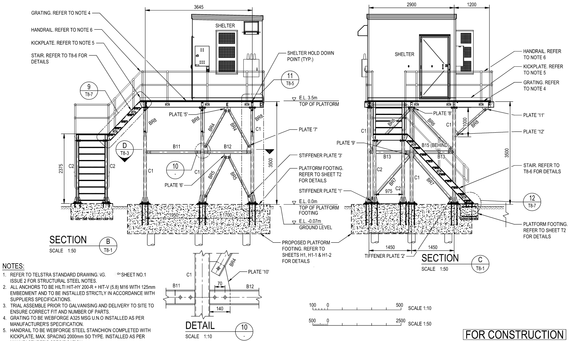 AllTelecom Design & DraftingStructural Design & DraftingCommercial & Residential Drafting Antenna Layout Site Elevation Equipment Layout Platform Plan Platform Elevation Platform Details Platform Plate Details Isomatric View 1 Isomatric View 2